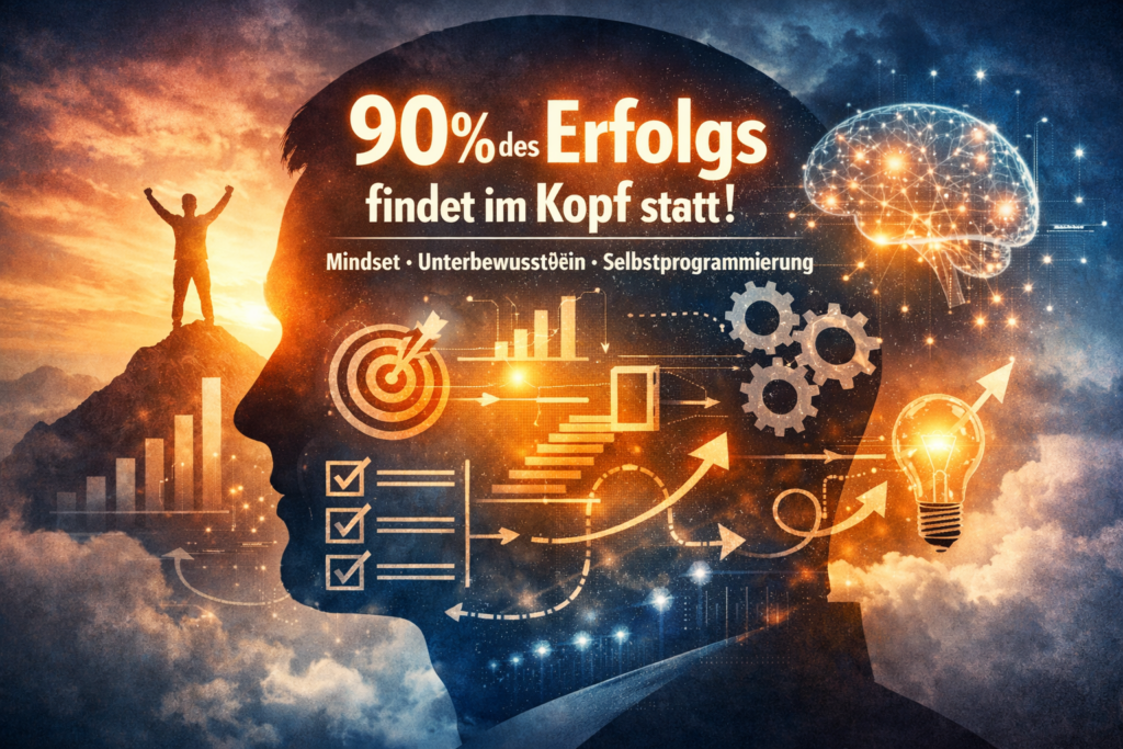 Der Satz „90% des Erfolgs findet im Kopf statt“ ist keine Mathematik – er ist eine Realitätsbeschreibung: Der Kopf ist der Multiplikator. Er entscheidet, ob Sie starten, wie Sie dranbleiben, wie Sie Rückschläge deuten – und ob Sie am Ende liefern.